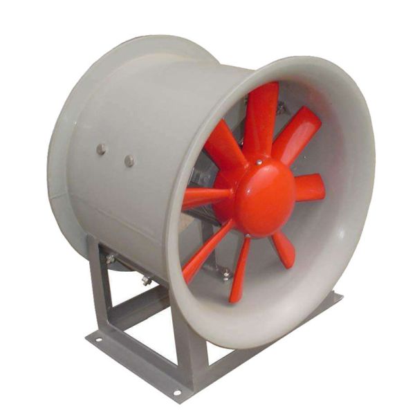 The fan blades are turned by a brushless DC motor or an asynchronous AC motor. Unlike centrifugal fans, axial models do not operate at high pressure, but offer constant flow. These fans are mounted in an air duct, a wall or partition. A bell mouth and a diffuser enhance air flow and reduce noise. Output can be improved by using a turbine wheel at the upstream or downstream guide vanes. Some fans have two counter-rotating sets of blades, while others offer enhanced performance by changing the angle of attack of the blades.